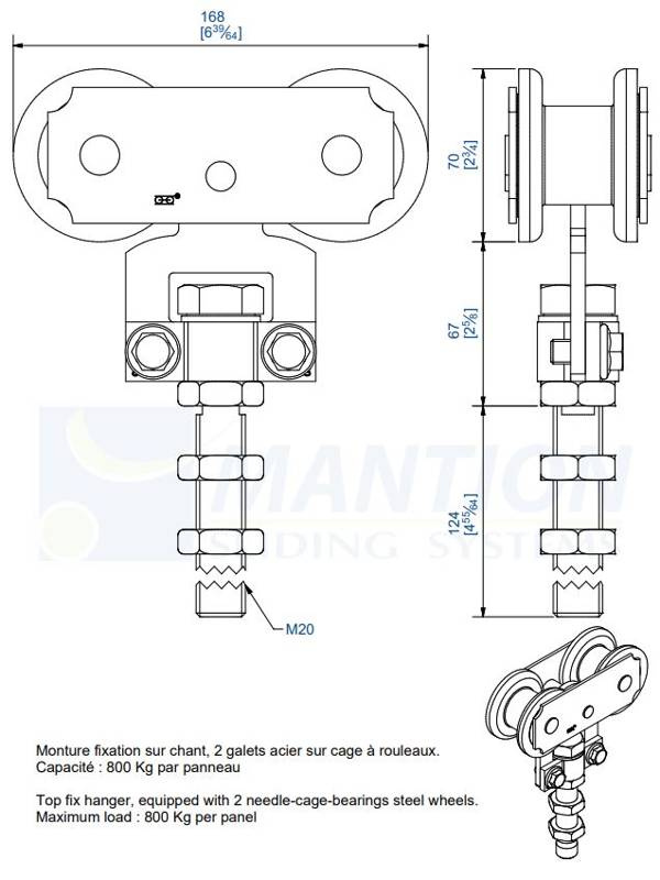 - Maksymalna waga skrzydła (2 wózki) 800 kg.