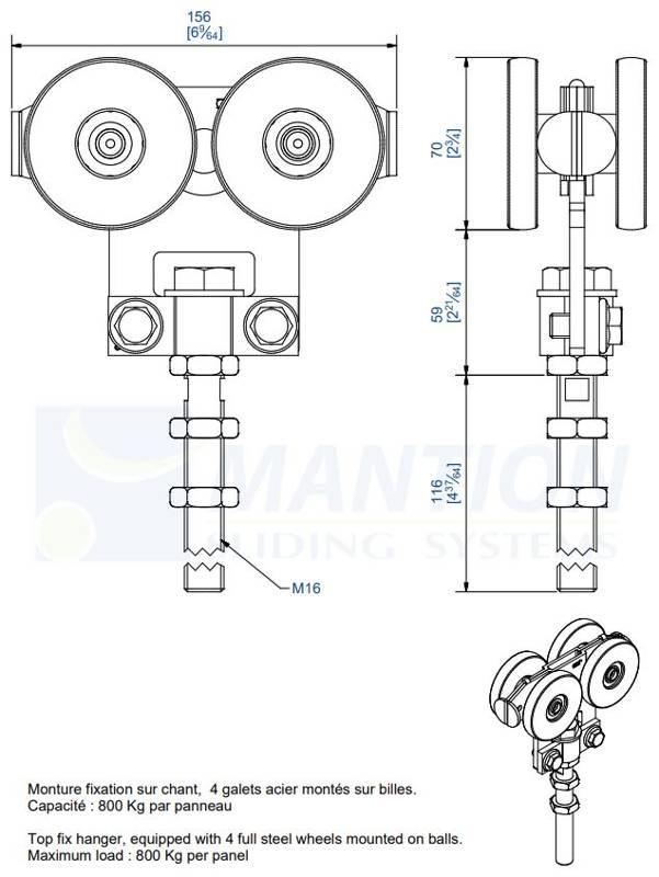 • Maksymalna waga skrzydła (2 wózki) 800 kg.