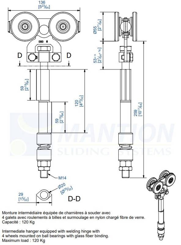 Wózek 4-kołowy do wspawania MANTION 0362SO, ocynk