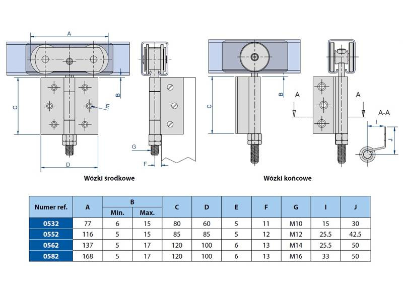 - Wózek pośredni do drzwi harmonijkowych z zawiasem.
