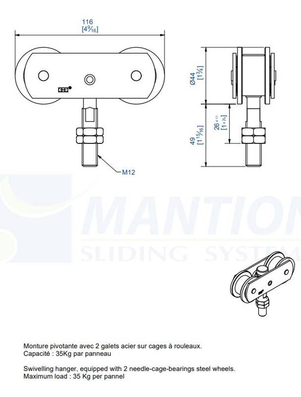 Wózek 4-kołowy MANTION 0653A to niezawodny element systemu podwieszanego, który umożliwia łatwe przemieszczanie bram przemysłowych i drzwi harmonijkowych. Dzięki solidnej konstrukcji i wytrzymałym kołom, wózek ten może udźwignąć 35 kg, co czyni go idealnym rozwiązaniem do wielu zastosowań.