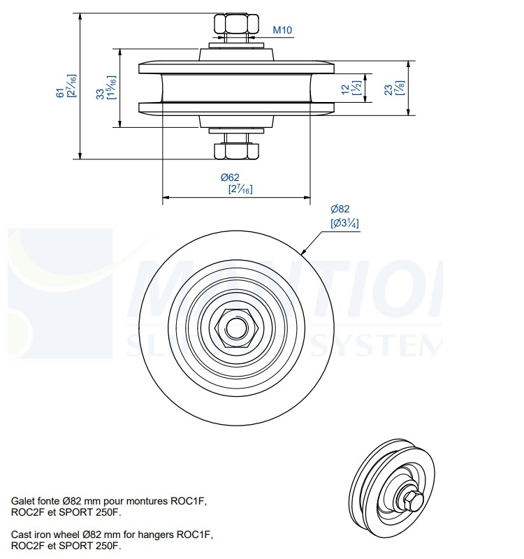 - Żeliwne koło o średnicy Ø82 mm do wózków ROC1F / ROC2F / 0250F