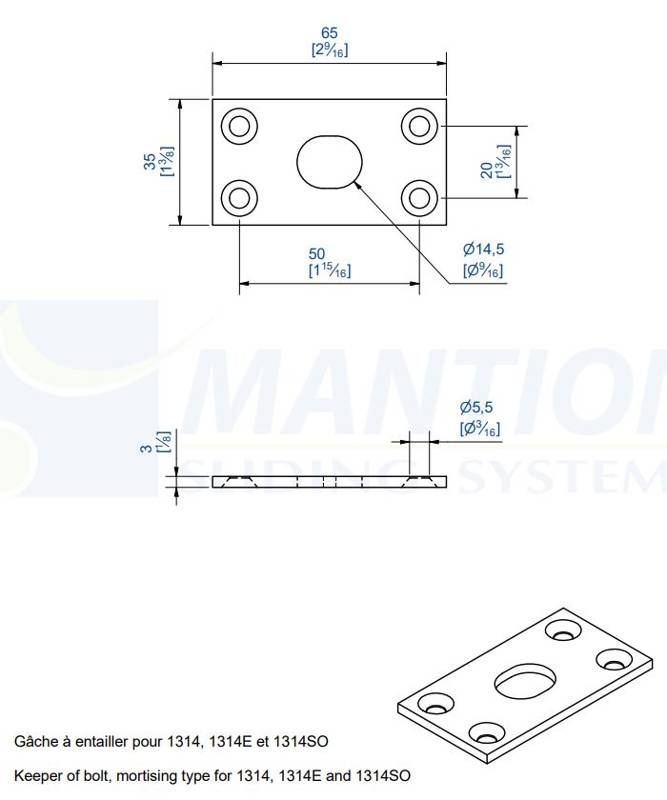 - Wpuszczane gniazdo mocujące trzpień do blokad 1314 / 1314E / 1314SO
