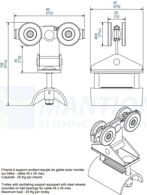 Zaopatrz się w wózek 4-kołowy z mocowaniem wahliwym do kabli płaskich MANTION 2432P, koła nylonowe i ciesz się wygodą oraz niezawodnością w swojej codziennej pracy!