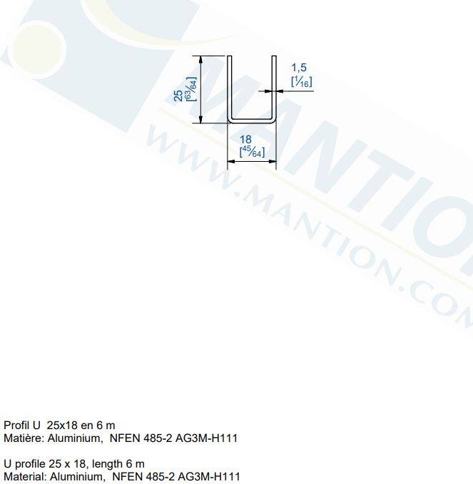 • Dolna szyna prowadząca; U-kształtna 25x18 mm, aluminium.