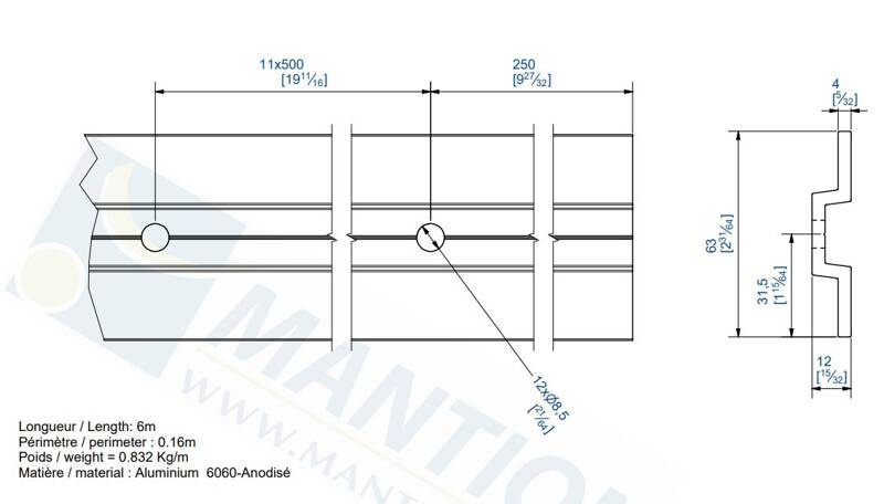 • Podwójny dolny profil prowadzący; 63x12 mm, aluminium anodyzowane 6060.