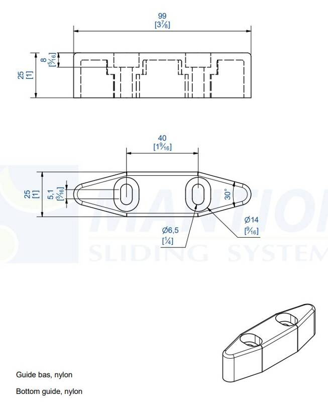 Prowadnik dolny MANTION 1110GDL, nylon to niezawodny element systemów podwieszanych MANTION. Zapewnia płynne i ciche działanie, a jego trwała konstrukcja gwarantuje długotrwałe użytkowanie.