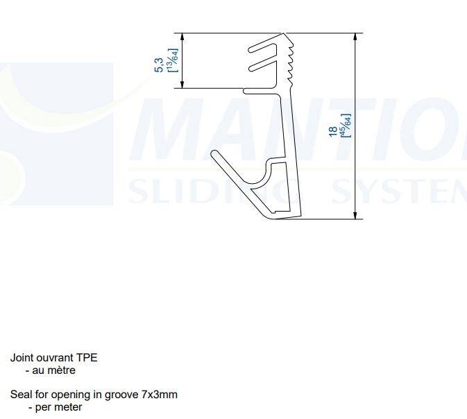 - Uszczelka wykonana z TPE do zamocowania w ramie pionowej.