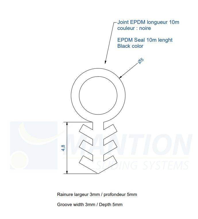 - Uszczelka wykonana z EPDM do zamocowania w ramie pionowej.