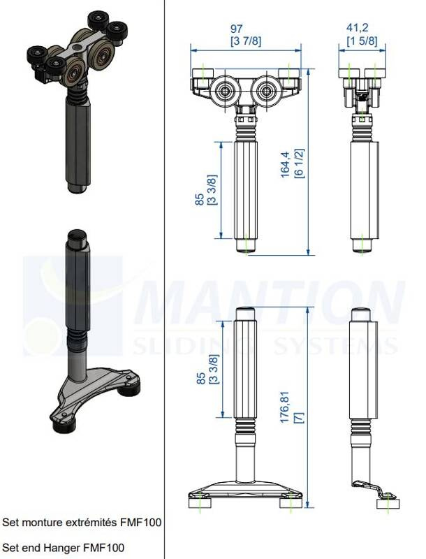 - Komplet zawiera górny wózek z zawiasem oraz prowadnik dolny z zawiasem do systemu OPENTEC FMF100, koła nylonowe.
