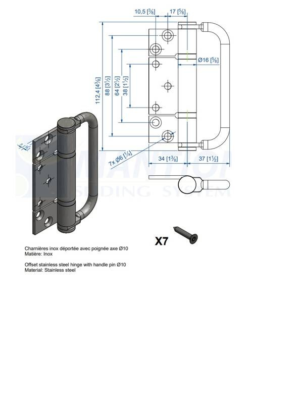Zawias skrzydłowy z uchwytem MANTION 1510DPXA2, stal nierdzewna