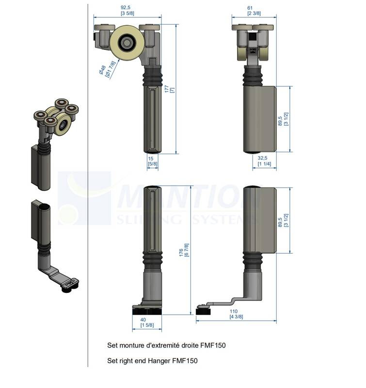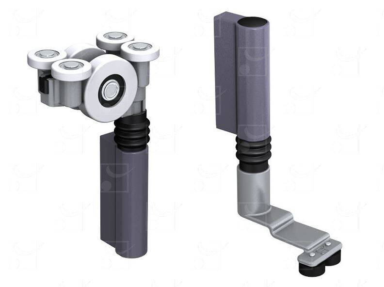 - Komplet zawiera górny prawy wózek z zawiasem oraz prawy prowadnik dolny z zawiasem do systemu OPENTEC FMF150, koła nylonowe.