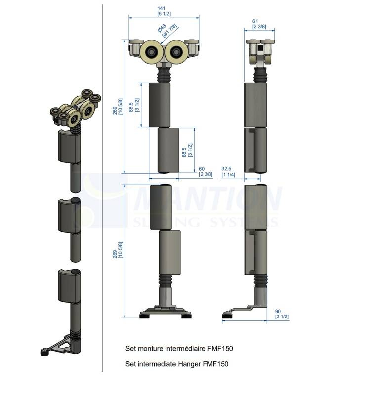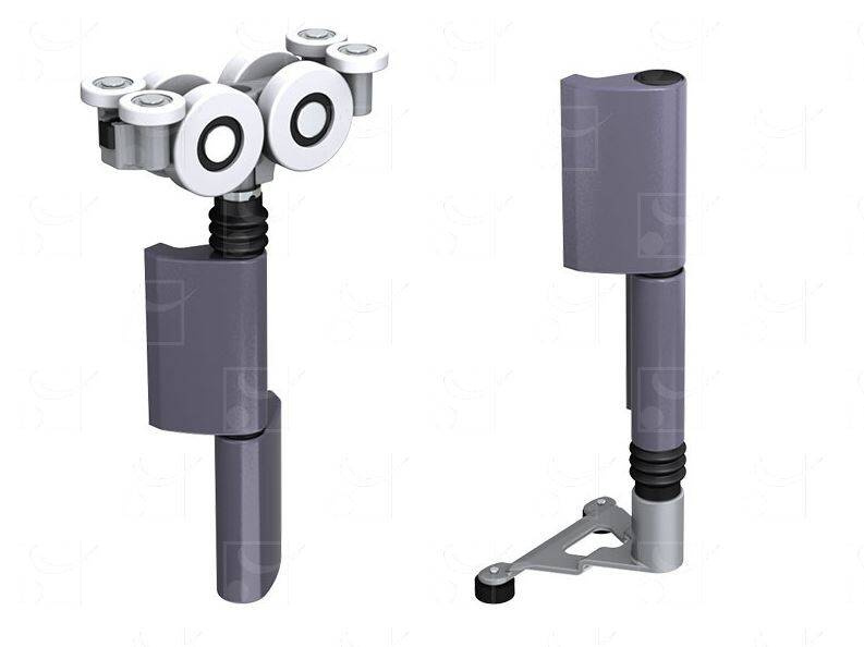 - Komplet zawiera górny środkowy wózek z zawiasem oraz środkowy prowadnik dolny z zawiasem do systemu OPENTEC FMF150, koła nylonowe.
