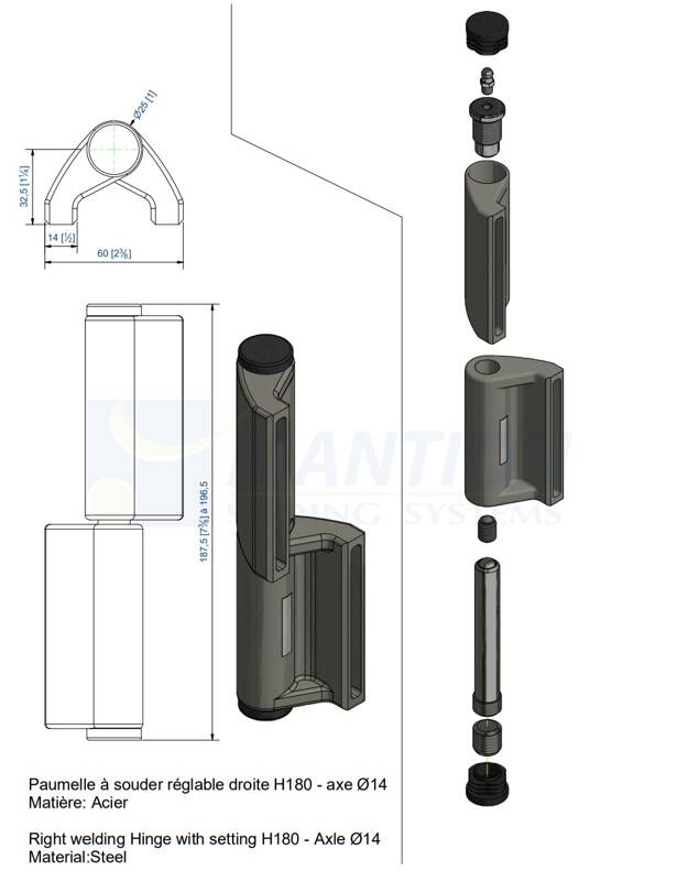 - Zawias do wspawania 187x60 mm; Ø14 mm