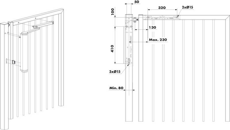 - Do furtek o szerokości do 1400 mm i wadze do 100 kg