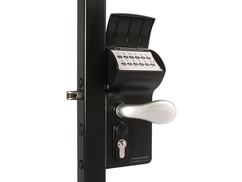 - Podświetlana elektronicznie klawiatura kodowa po obu stronach, zabezpieczona przed warunkami atmosferycznymi