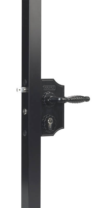 • - zamek ozdobny w obudowie aluminiowej z nierdzewnym mechanizmem - dedykowany do bram i furtek kutych