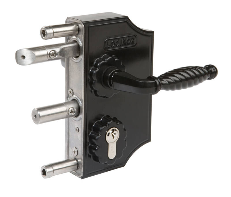 - - zamek ozdobny w obudowie aluminiowej z nierdzewnym mechanizmem - dedykowany do bram i furtek kutych