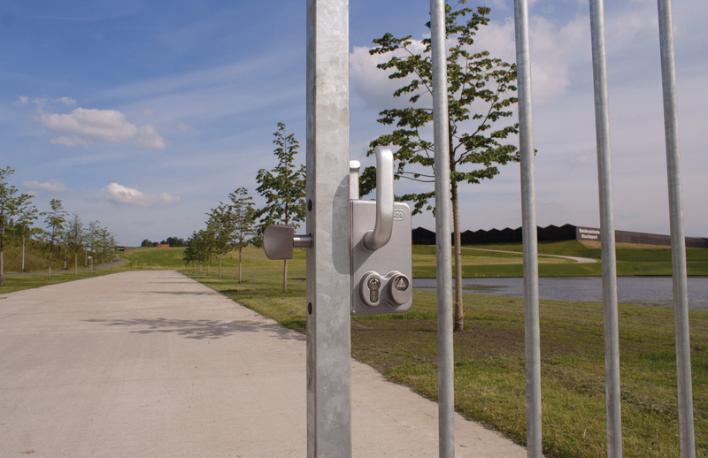 Zamek do bram przesuwnych z nierdzewnym mechanizmem w obudowie aluminiowej, obsługiwany dwiema wkładkami. Każdą wkładką możemy niezależnie otwierać lub zamykać zamek. Stosowany np. kiedy straż pożarna powinna mieć dostęp do obiektu.
