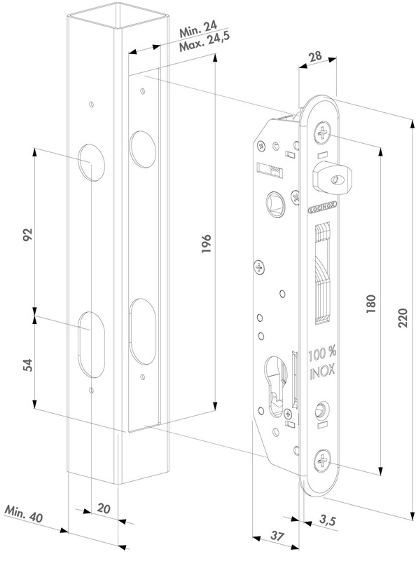 Kompletny zestaw zamka Locinox FIFTYSET z zaczepem to idealne rozwiązanie do montażu na bramach metalowych, PCV lub aluminiowych. Zamek i zaczep wykonane są ze stali nierdzewnej, co gwarantuje trwałość i odporność na warunki atmosferyczne.
