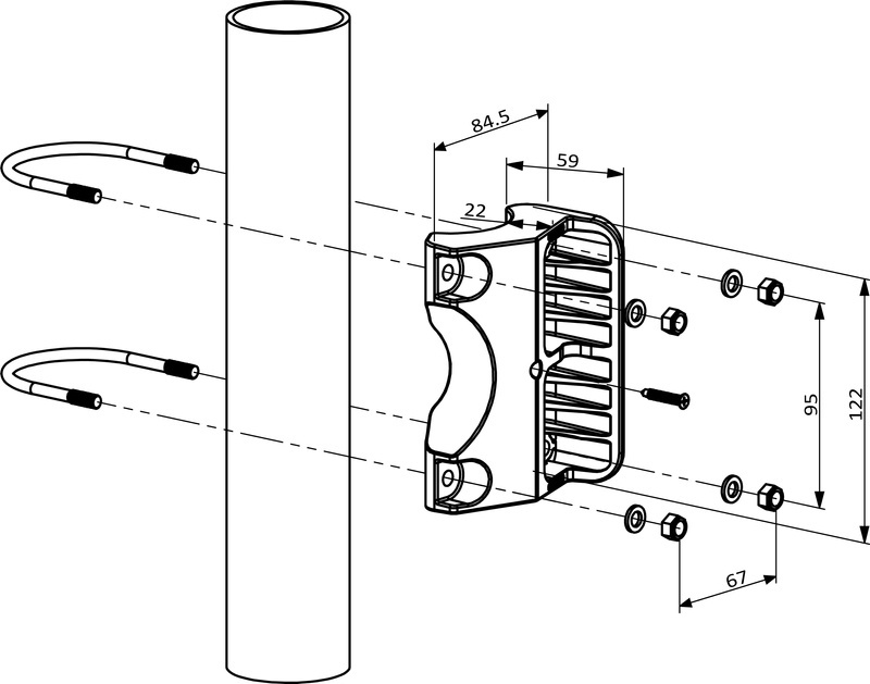 Zaczep poliamidowy do bram i furtek ogrodowych. Zaokrąglone śruby zapewniają szybki i łatwy montaż na rurze o średnicy 60 mm. Wyłącznie do furtek z profilem o szerokości 40 mm.