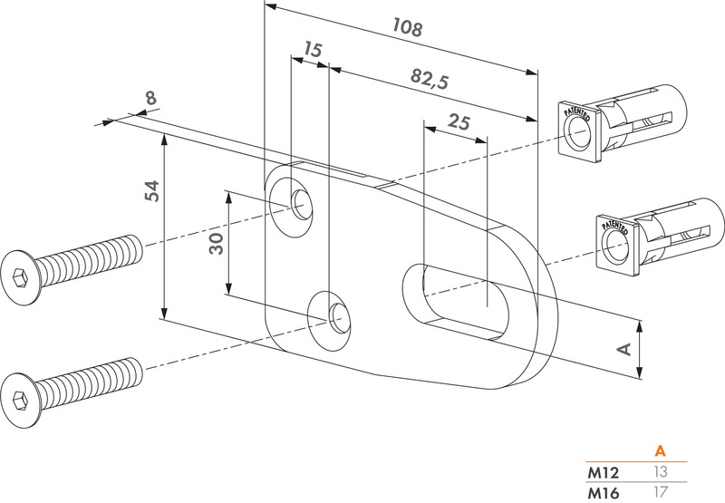 - - max waga bramy: 50 kg (M12); 75 kg (M16)