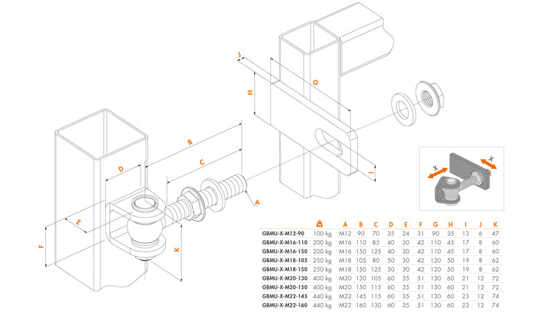 Regulowany w trzech kierunkach zawias 180° Locinox GBMU; M12 - M22 - zdjęcie produktu