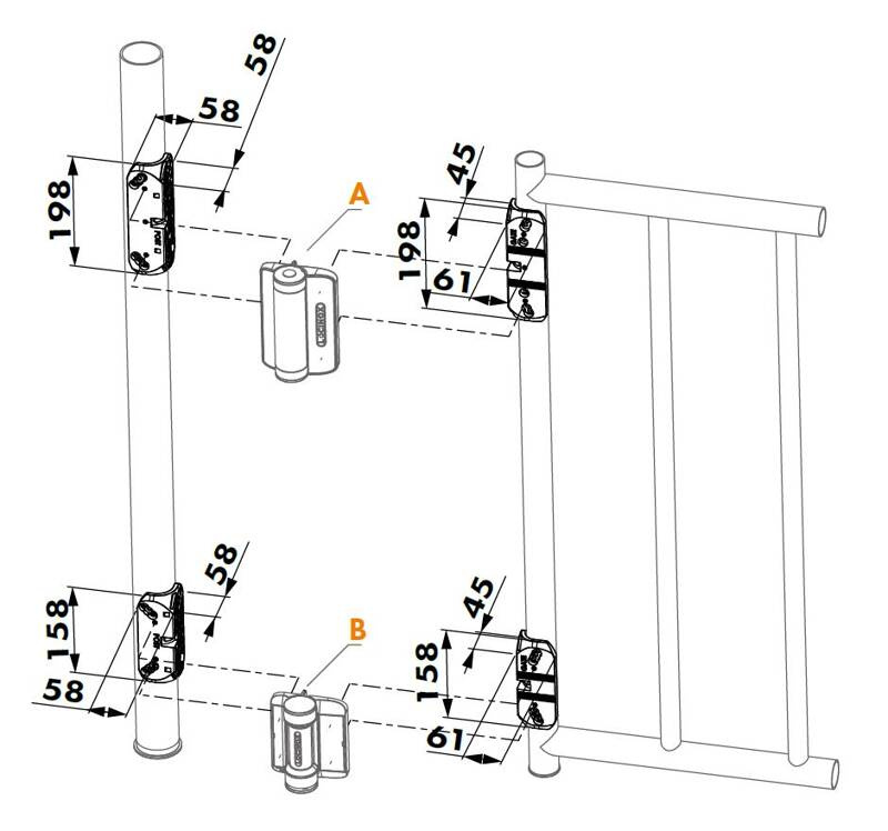 Adaptery do zawiasu Serval są zawarte w zestawie, co ułatwia montaż i zapewnia kompleksowe rozwiązanie. Aluminiowe anodyzowane adaptery do montażu Caracal na profilach okrągłych są trwałe i odporne na warunki atmosferyczne, co sprawia, że produkt będzie służył przez wiele lat. Szeroka szczelina od 30 do 50 mm pozwala na dopasowanie do różnych średnic słupków i profili bramki, co sprawia, że uchwyt jest uniwersalny i łatwy w instalacji.