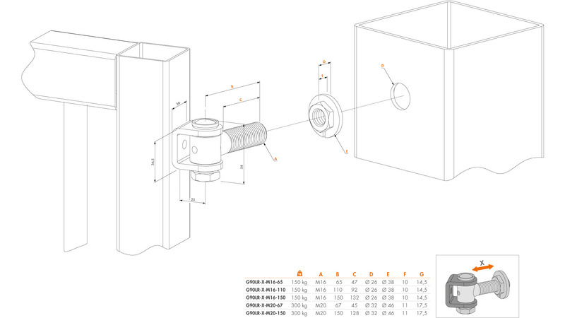 Zawias 90° z nakrętką regulowaną Locinox G90LR jest doskonałym rozwiązaniem dla małych bram przemysłowych. Dzięki ocynkowanej ogniowo konstrukcji jest odporny na warunki atmosferyczne, co gwarantuje długotrwałe użytkowanie.