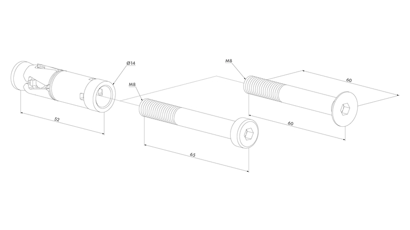 - Składa się z 2 kołków rozporowych z pasującymi śrubami