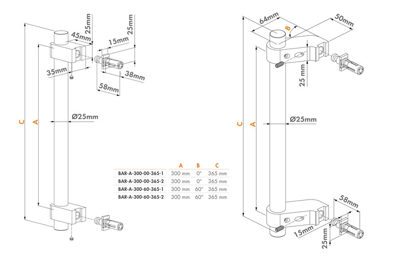 - - prosty lub skośny (60°) uchwyt z anodowanego aluminium