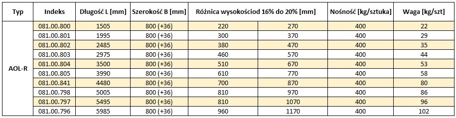 - - różnica poziomów (16%-20%): 300 - 370 mm