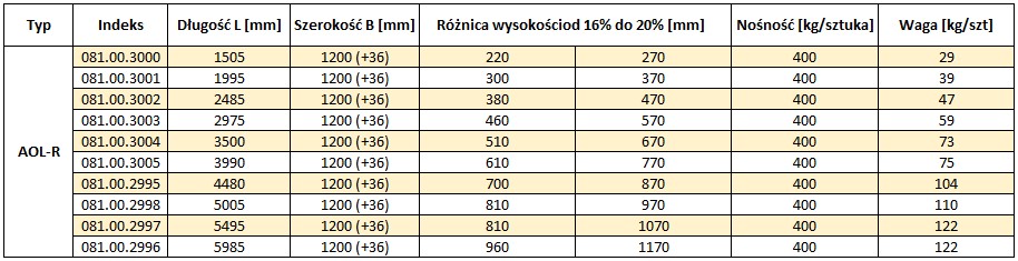 - - różnica poziomów (16%-20%): 460 - 570 mm