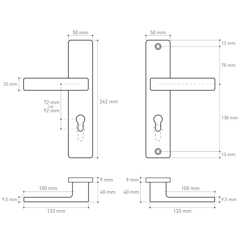 • Antywłamaniowa klamka drzwiowa na szyldzie długim.
