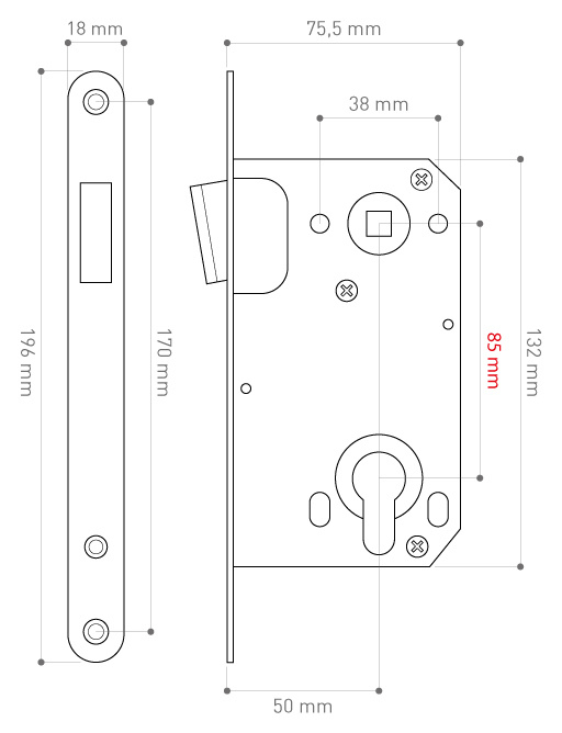 Zamek wpuszczany magnetyczny METAL-BUD 85/50, typ portugalski