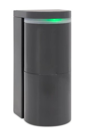 Ciemna (czarna) kolorystyka obudowy dyskretnie komponuje się ze słupkami i konstrukcjami wjazdowymi, dzięki czemu urządzenie nie dominuje wizualnie na elewacji ani przy ogrodzeniu. To ważne w projektach, gdzie liczy się estetyka – np. przy reprezentacyjnych wjazdach do siedzib firm czy na osiedlach premium.