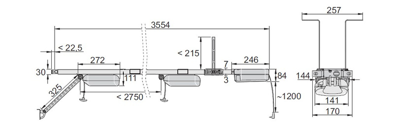 Komplet do montażu — 3‑częściowa szyna jezdna i akcesoria stropowe w zestawie