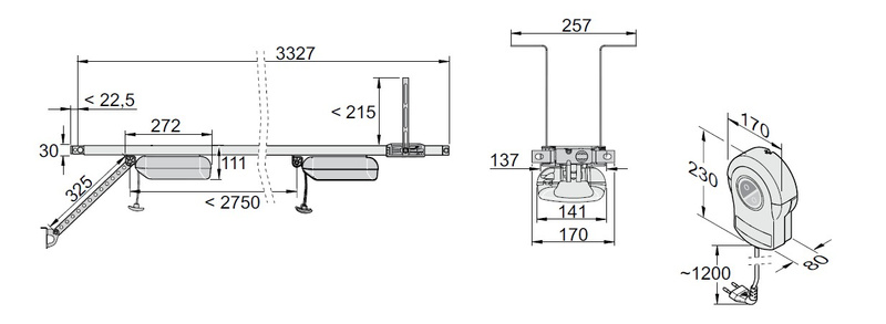 - Przykładowe wymiary obsługiwanej bramy: do ok. 8000 (szer.) × 2500 (wys.) mm — zależnie od modelu i rodzaju bramy.